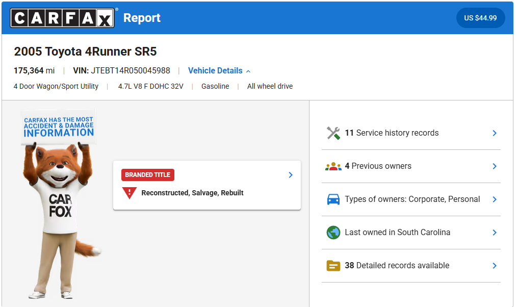2005 Toyota 4Runner Sport Edition V8 4WD - 178,949 miles