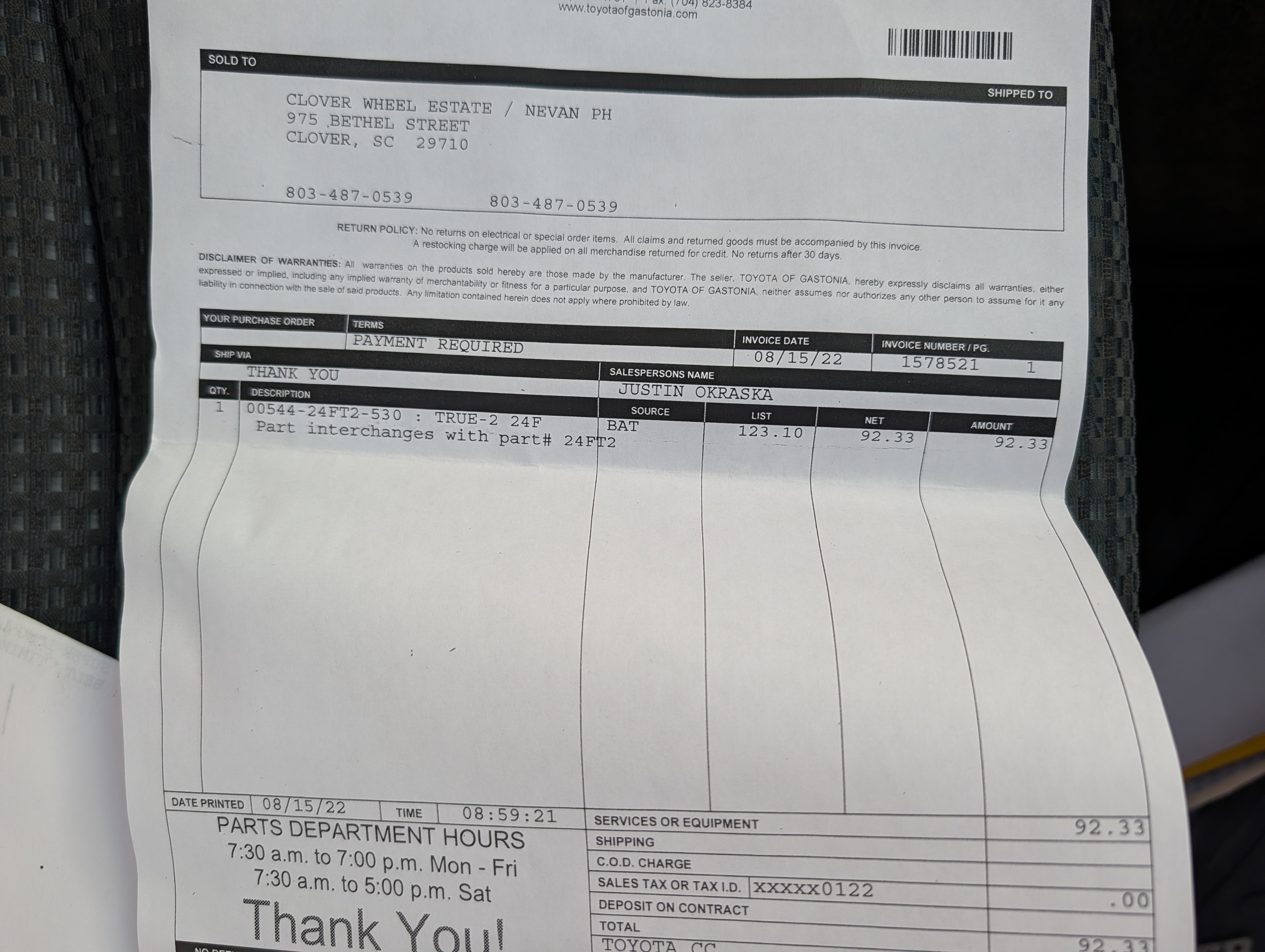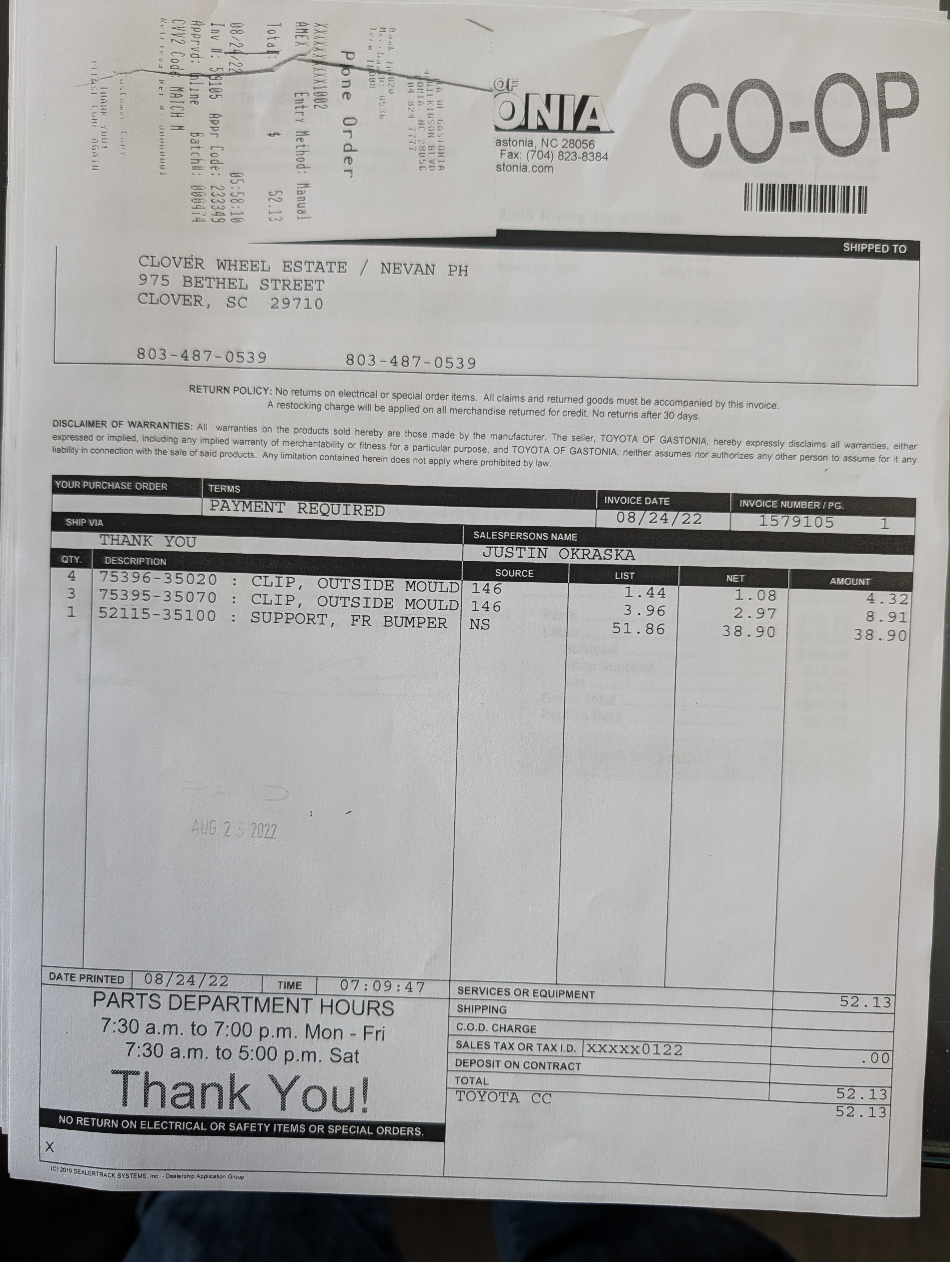 -Our address is 975 Bethel St. Clover, SC 29710