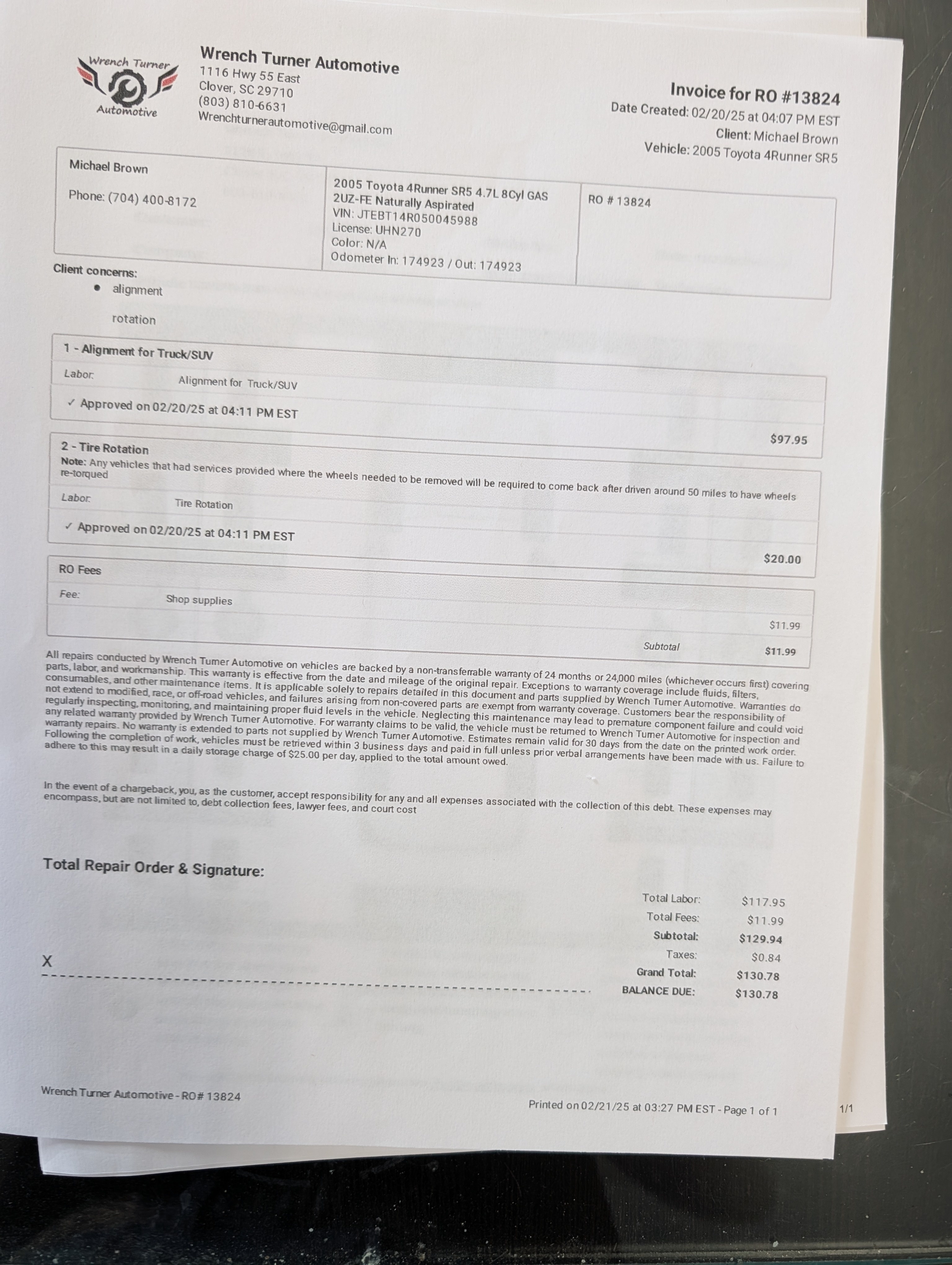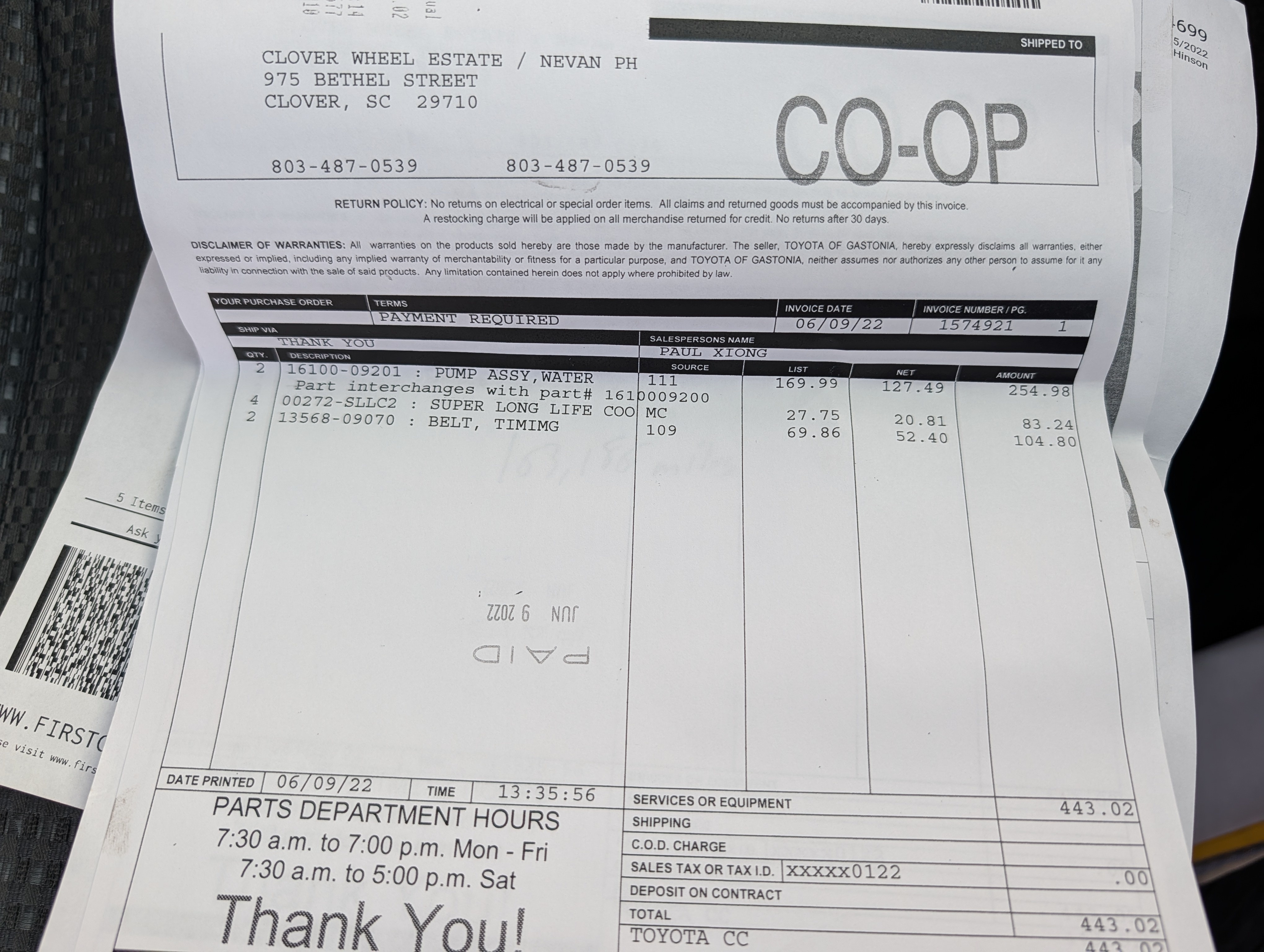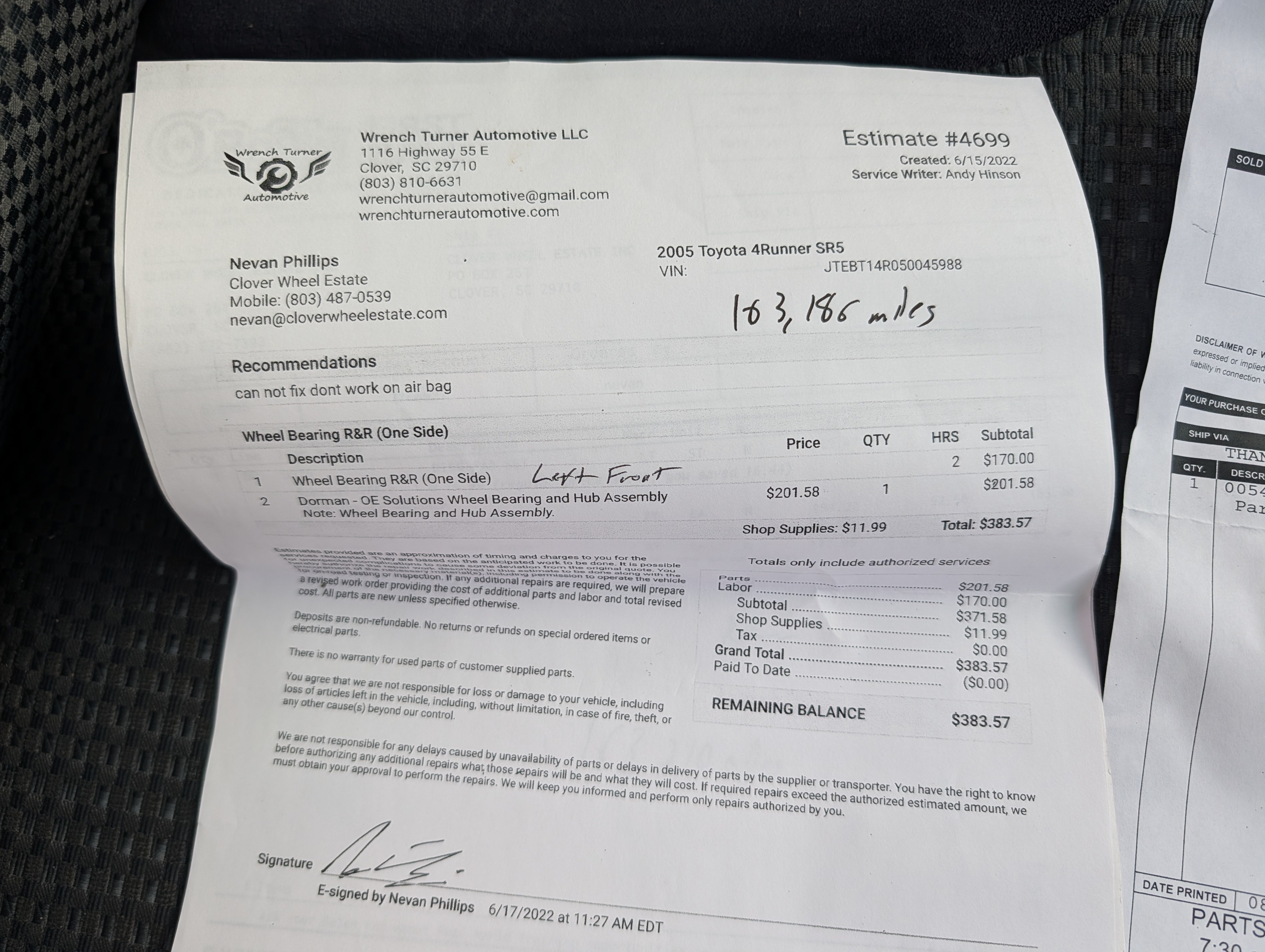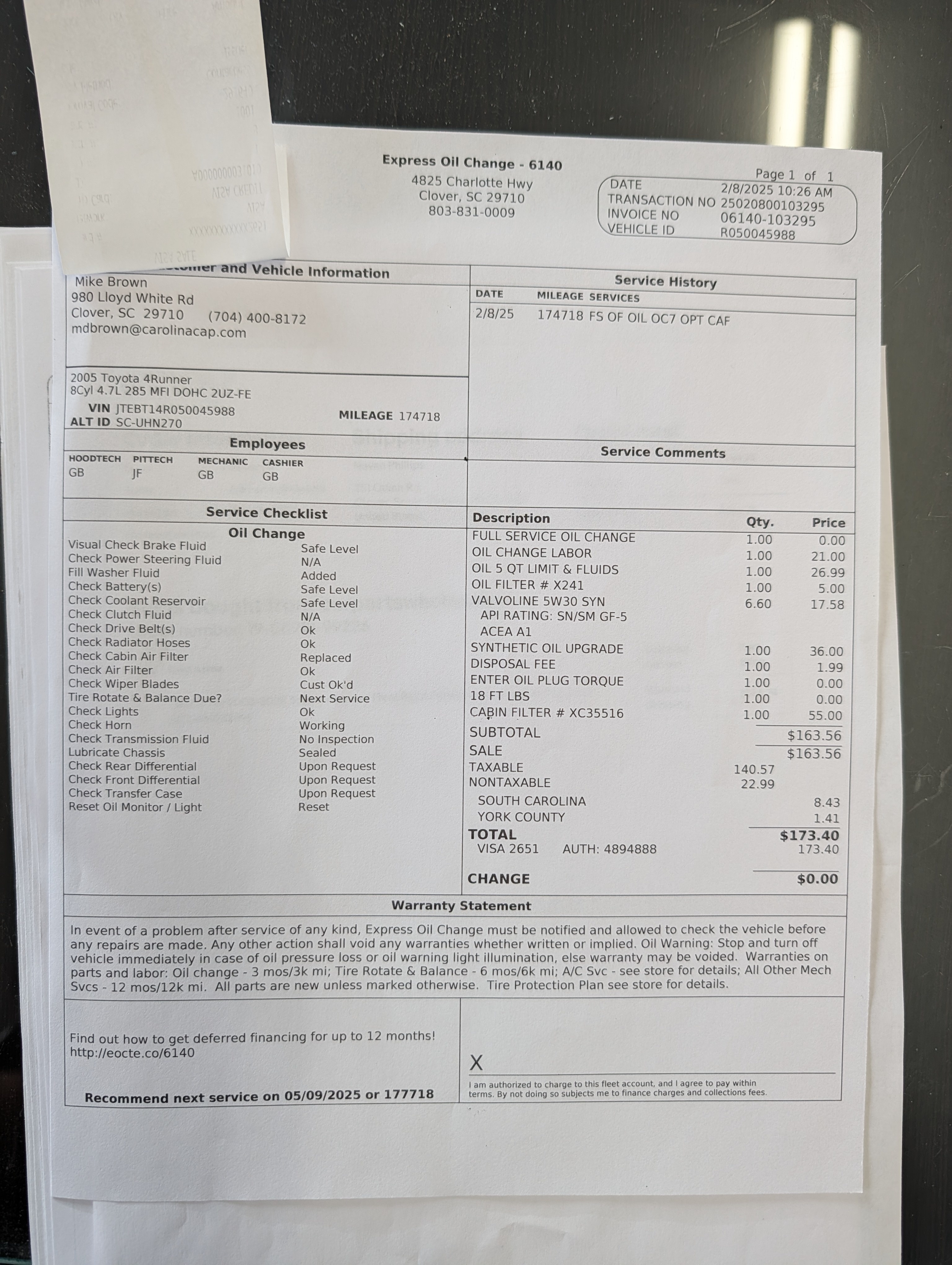 -Timing belt and water pump service completed at 163,000 miles