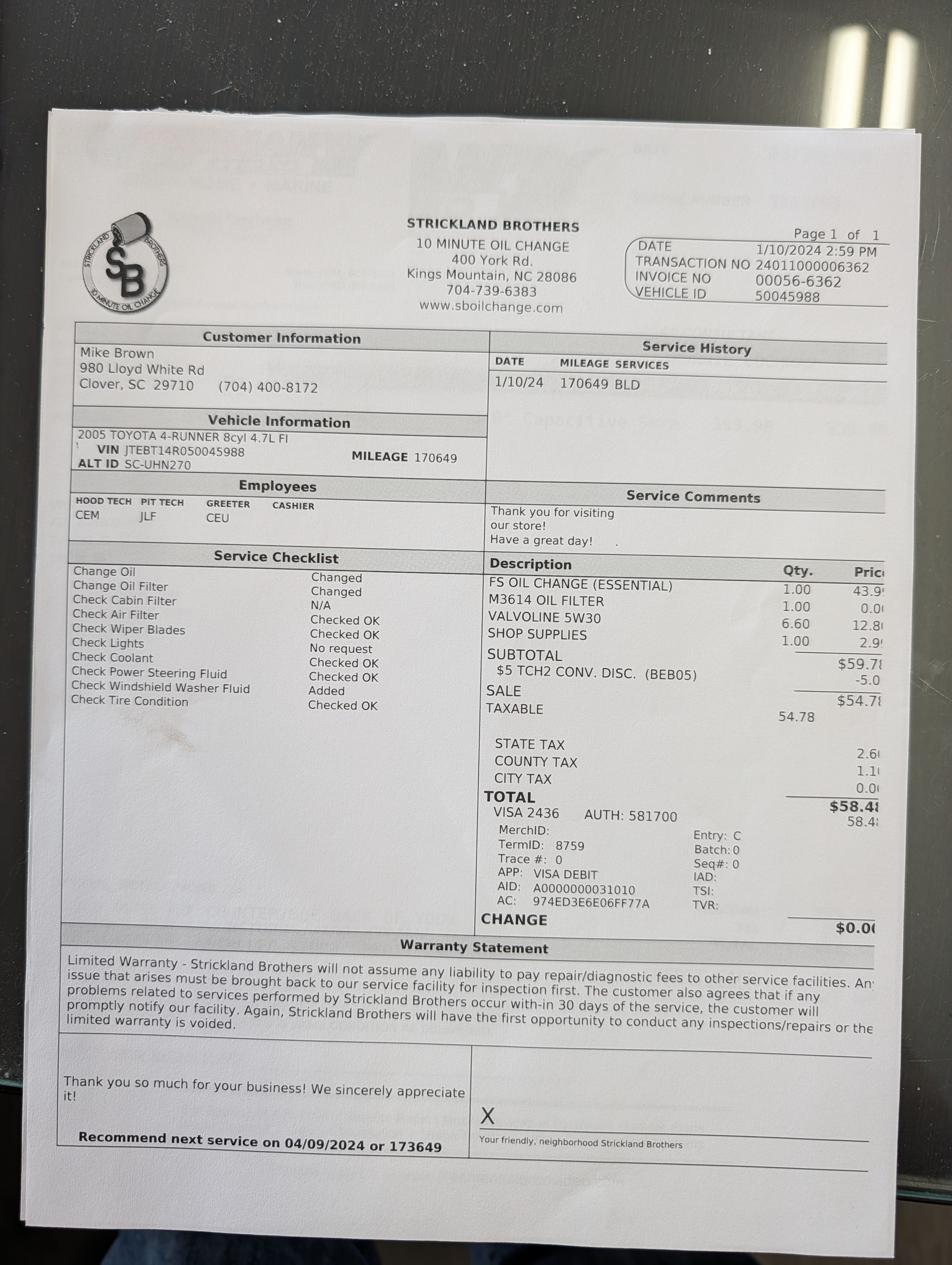 -Fresh oil change
