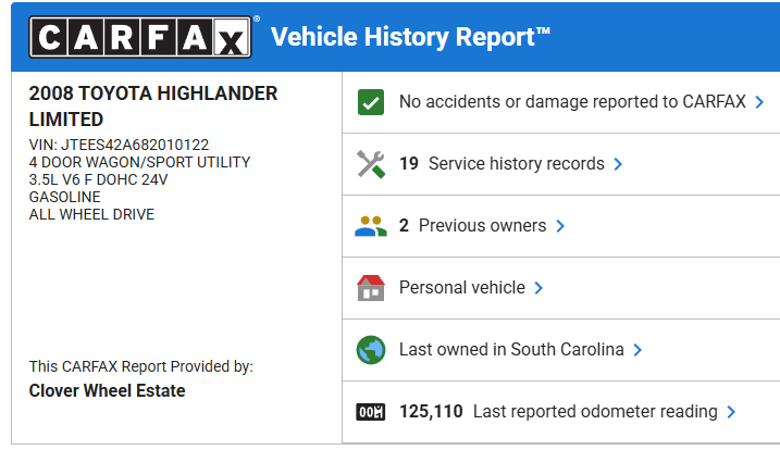 2008 Toyota Highlander Limited 4WD - 125,187 miles