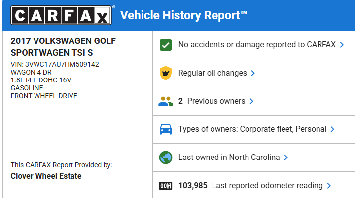 2017 Volkswagen Golf SportWagen TSI S - 104,049 miles